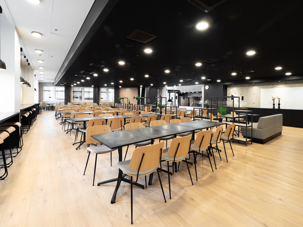 Våra utrymmen i den moderna byggnaden Aurum lämpar sig ypperligt för till exempel cocktailtillställningar, mingel och andra professionella festligheter, men går också att anpassa till andra typer av evenemang. Salen är utrustad med en serveringsdisk.