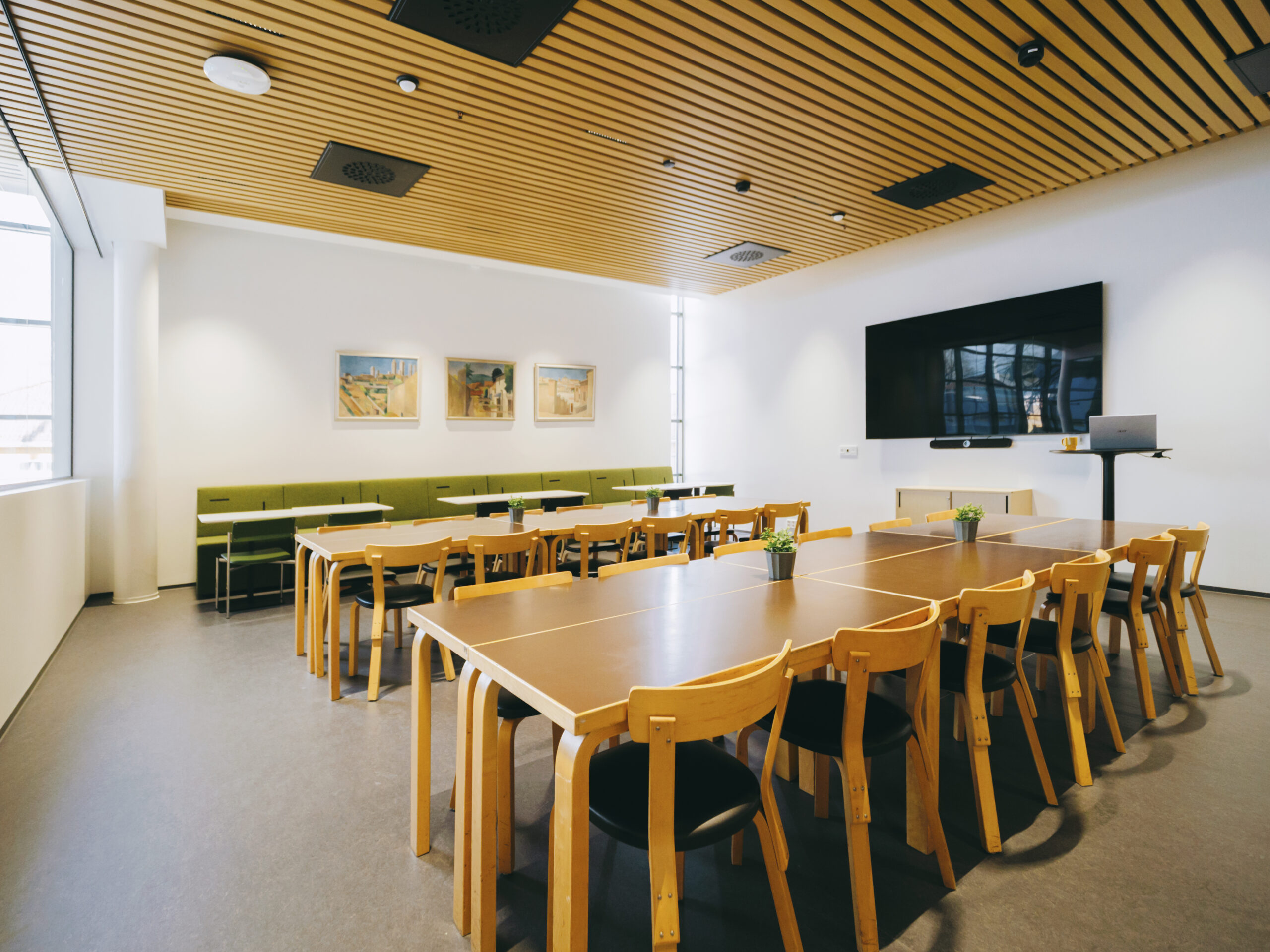 Kabinetti Mimosa on tilava ja valoisa tila suurilla ikkunoilla, ja se soveltuu hyvin kokouksiin, työpajoihin ja seminaareihin. Kabinetin koko ja varustelu, mukaan lukien suuri näyttö, tekevät siitä erinomaisen myös illallisille ja muille tilaisuuksille, jotka vaativat sekä toimivuutta että mukavuutta.